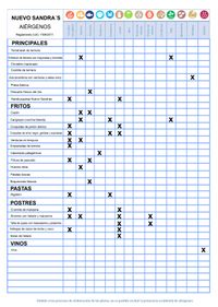 En Nuevo Sandras nos comprometemos con tu bienestar. En esta sección encontrarás información detallada sobre los alérgenos presentes en nuestros platos, para que puedas disfrutar con total seguridad y confianza. Consulta cada categoría y si tienes alguna duda, nuestro equipo estará encantado de ayudarte.